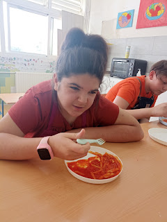 Este viernes hemos ido , como cada viernes en este trimestre, a la panadería a comprar el pan para hacernos nuestras tostadas. Pero este viernes, además, hemos ido al supermercado a comprar naranja para hacernos un zumo de naranja natural. Desayuno saludable. ¡Qué buena forma de empezar el día!